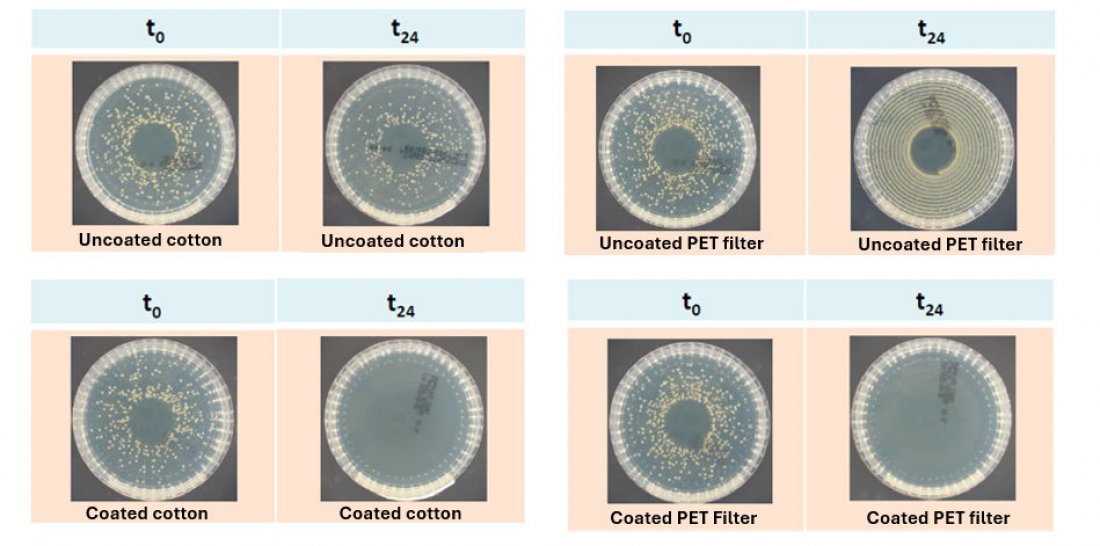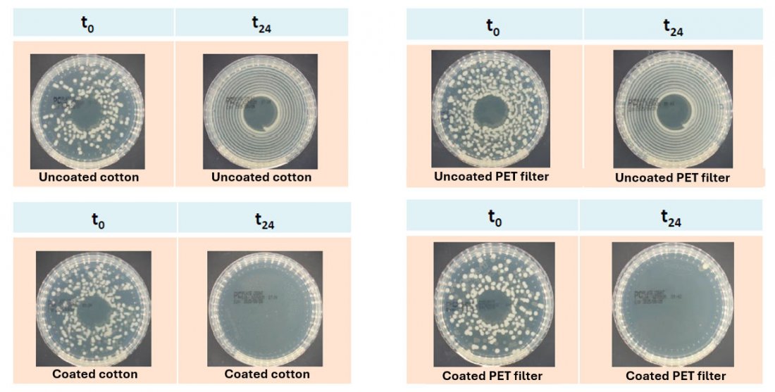 - The developed coating a very high antibacterial and antiviral effectiveness against multiple pathogens on cotton and air filter substrates, confirming their strong potential as scalable and sustainable antimicrobial and antiviral surface solutions.