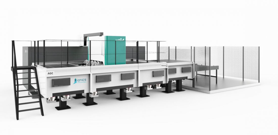 AGC in collaboration with Ionics launches the first large area Ion implantation machine for treating flat panels up till a dimension of 1600 mm x 1800 mm